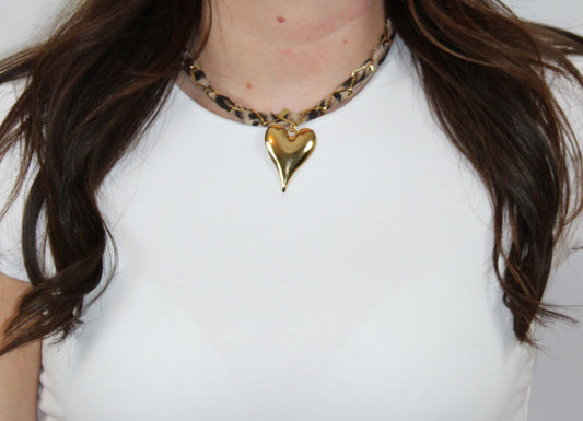 Stoffen panter ketting met bedel hart