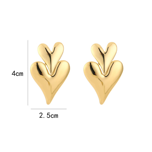 Love dubbel Hart oorbellen | Goud