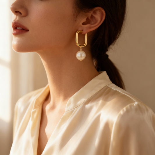 Oorbellen met hanger driehoek | Goud | Zilver