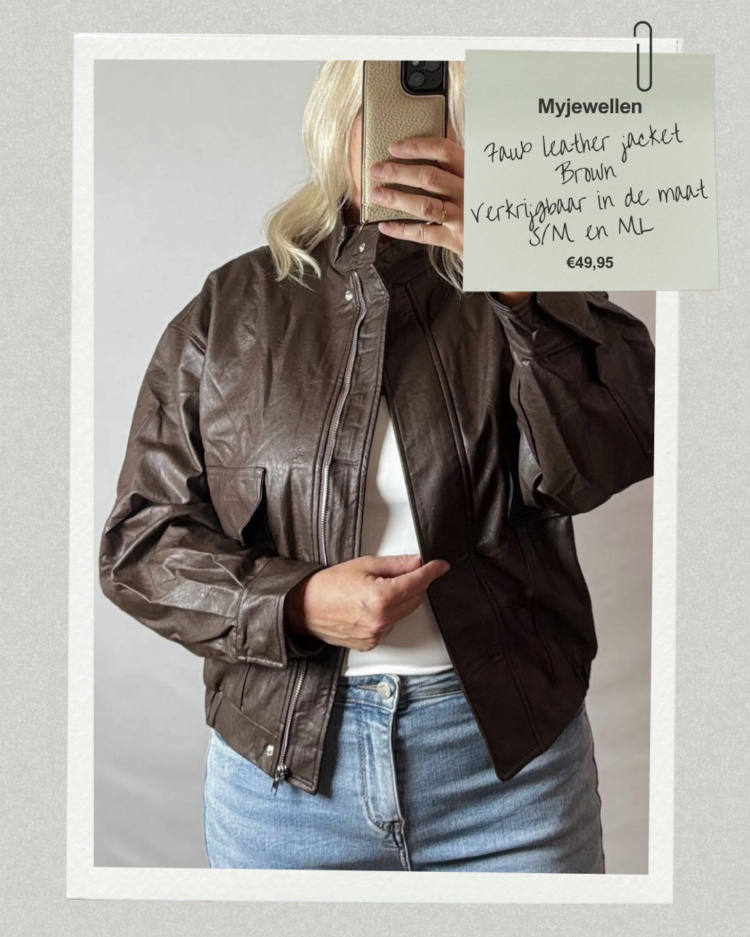 De bruine faux leather jacket is een echte statement piece voor het najaar.