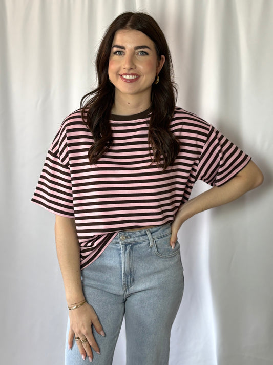 UitverkochtJuul Short Sleeve Striped Brown Pink