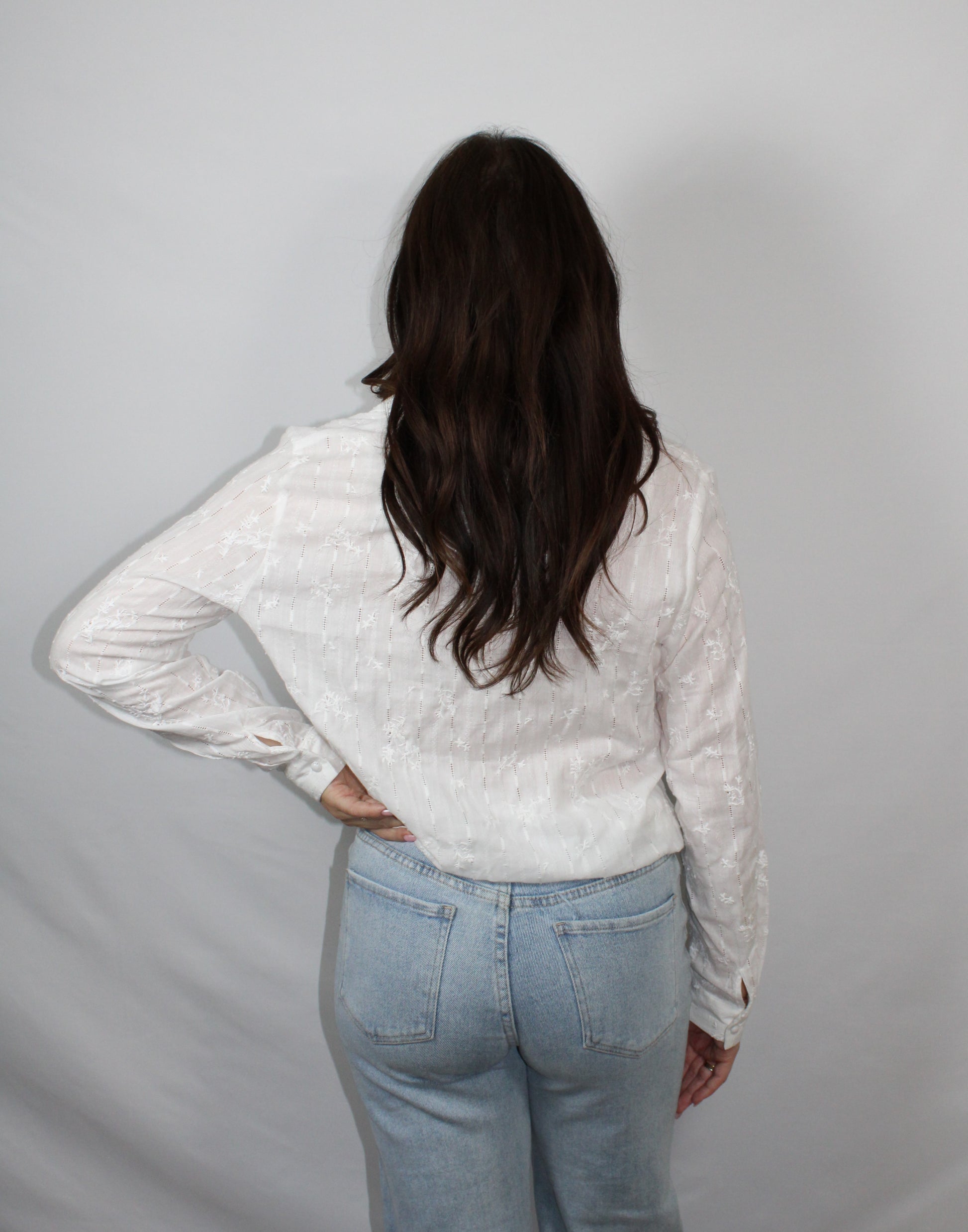 Voeg een vleugje elegantie en veelzijdigheid toe aan je garderobe met de Fiene witte blouse. Deze tijdloze blouse is perfect voor elke gelegenheid, of je nu naar kantoor gaat, een avondje uit hebt of een casual dagje uit plant. Gemaakt van hoogwaardige materialen en met oog voor detail, is de Fiene blouse een must-have voor elke modebewuste vrouw.