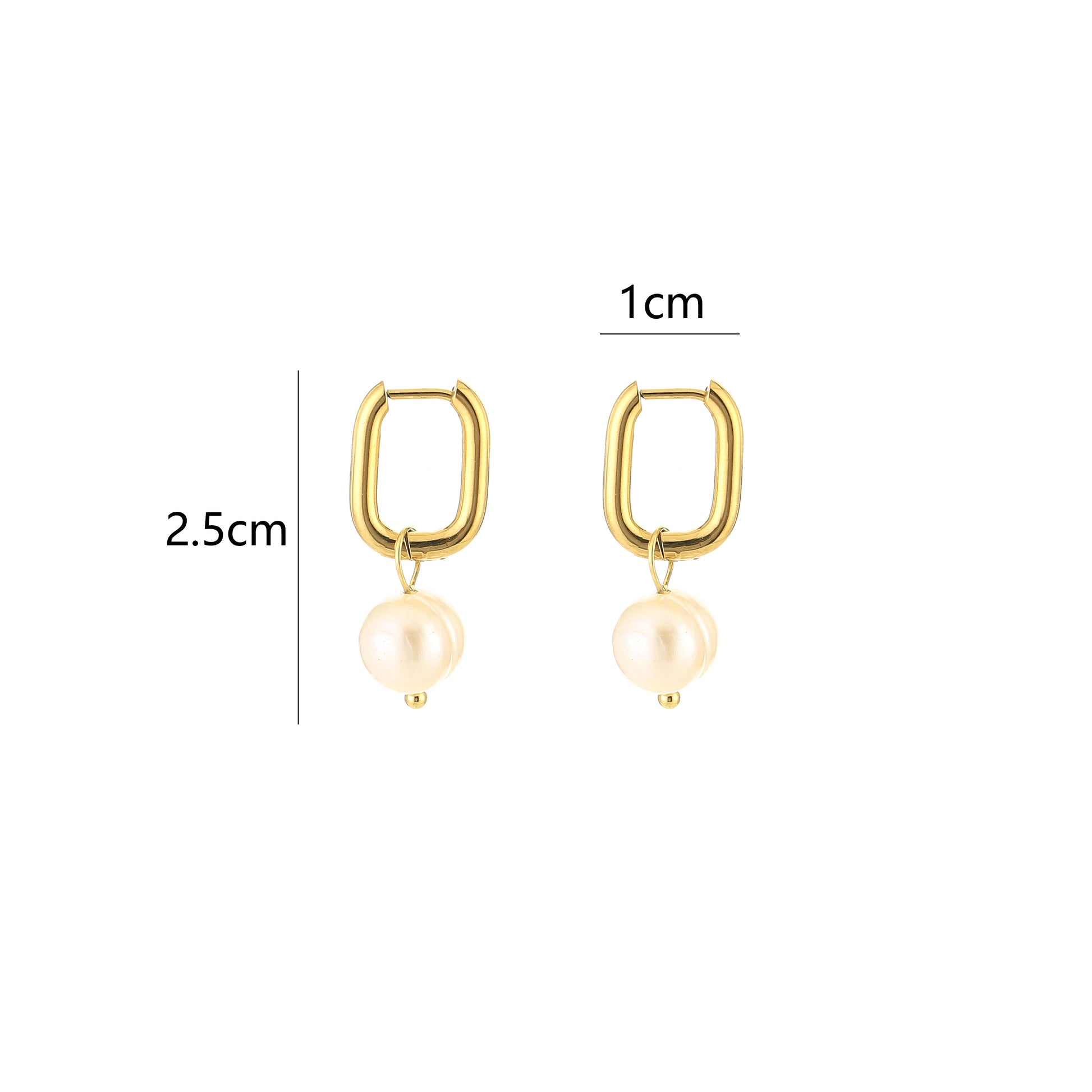 Elegant en stijlvol! Deze goudkleurige stainless steel oorbellen met parel hanger zijn een tijdloze toevoeging aan je sieradencollectie. Perfect voor een chique finishing touch!